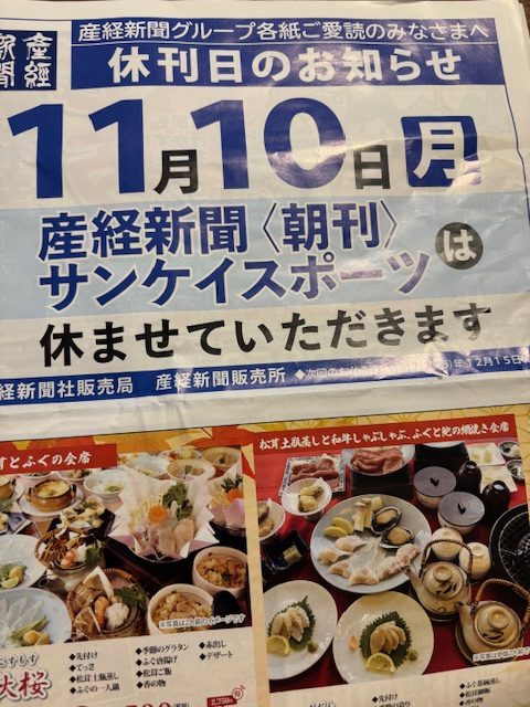 明日新聞は休刊、の案内ですが、