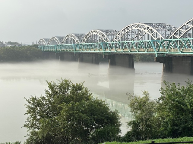 木曽川に朝もやがでていました。